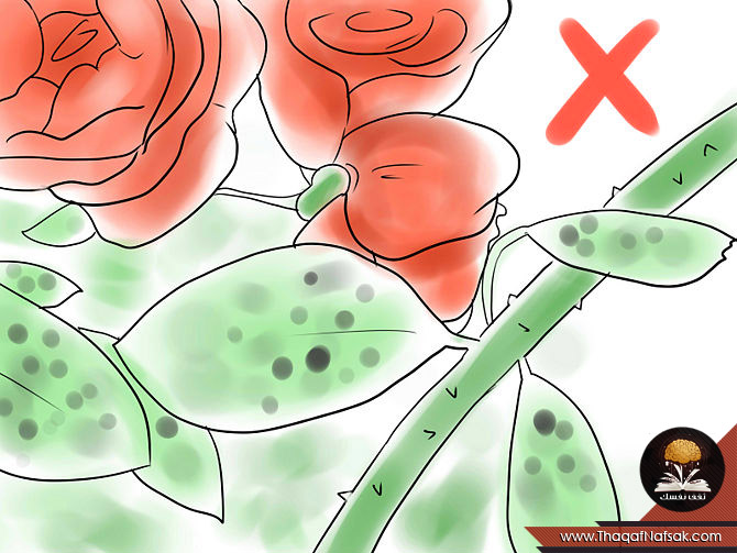 الطريقة من 4-4 حماية الورد من الطقس و الأمراض :حماية الورد خلال فصل الشتاء : ، قد تتلف الورود عندما تتركها لفترة طويلة و مع الرياح الشديدة و الصقيع خلال فصل الشتاء ، يفضل تقليمه بحوالي 2 بوصة . و ربطها معاً بخيط لحمايتها من سوء الأحوال الجوية . في الطقس الدافئ ، في درجة 51 يفضل إزالة تل السماد . رش الورد بالماء. معظم أصناف الورد تحتاج ذلك . إستخدام المبيدات الحشرية للتخلص من الحشرات التي تضر بصحة النباتات . إزالة الأوراق التي تغير لونها و ذبلت . يمكنك شراء المبيدات الطبيعية مثل زيت إكليل الجبل و رشه علي الأوراق فهو يشجع علي قتل الحشرات الضارة . حماية الورود من البقع السوداء و العفن المسحوقي: يمكنك حماية الورد الخاص بك من خلال إستخدام مبيد فطري في بداية موسم الزراعة. و ينصح بالذهاب إلي الجمعية الزاعية للبحث عن افضل طرق لحماية النباتات .
