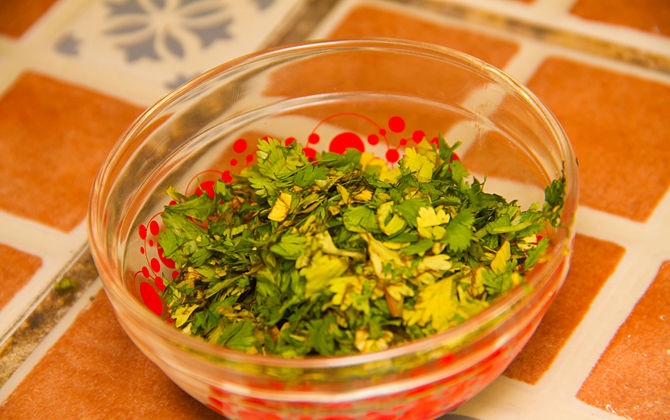 5- قم بوضع بعض المقبلات كالملح والفلفل والكزبرة إلى خليط الباستا