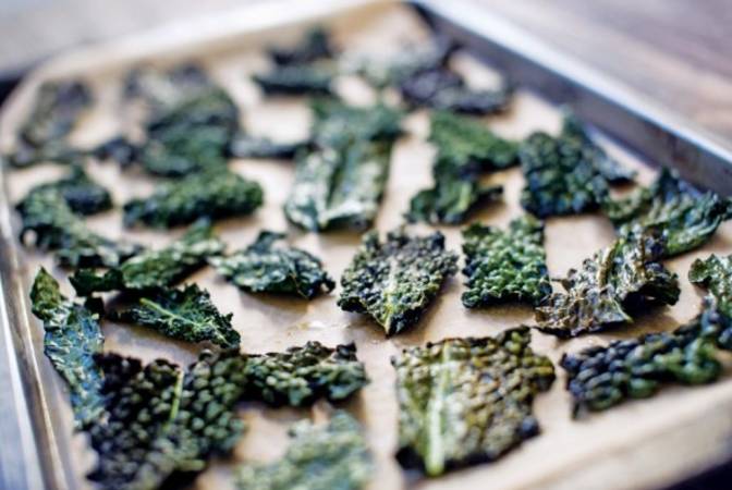 رقائق خبز الثوم و السبانخ : وضع كل من فتات الخبز و جبن الباراميزان و فصوص الثوم في وعاء . خلط أوراق السبانخ مع زيت الزيتون في وعاء منفصل .و ثم الجمع بينهم و خبز الأوراق في درجة حرارة 375 درجة . تعطي طعم مثل البطاطس العادية و لكن عند خبزها تصبح أكثر صحة .