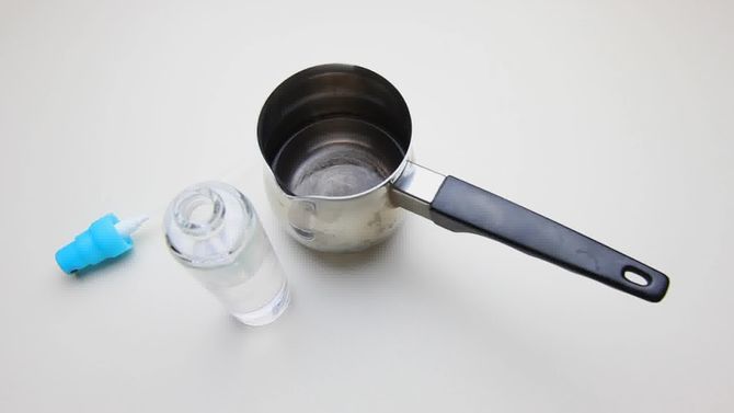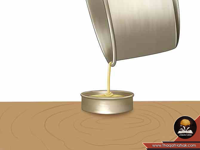 2. تجهيز الوعاء جيداً . هذا النوع من الملمع الشفاه يصلب بسرعة كبيرةن لذلك يجب أن ترغب في الحصول علي الوعاء الخاص بك لسكب الخليط بداخله. يمكنك إستخدام وعاء صغير أو أنابيب . 3. تسخين الشمع في الغلاية ، شمع العسل من الصعب تركه في درجة حرارة الغرفة ، و لكن عندما يتم إذابته و مزجه مع المكونات المختلفة ليخلق لك الملمس الناعم و الشمعي الذي تريده . لذلك قم بوضع شمع العسل المفروم في غلاية مزدوجة و الطهي علي نار خفيفة حتي يتم إذابته كلياً. 4. خلط جميع المكونات الأخري .وضع زيت جوز الهند و زيت الزيتون في وعاء مع شمع العسل المذاب . و يفضل إستخدام معلقة لتقليب المكونات معاً و إضافة زيت النعناع و تقليبه مع الخليط .