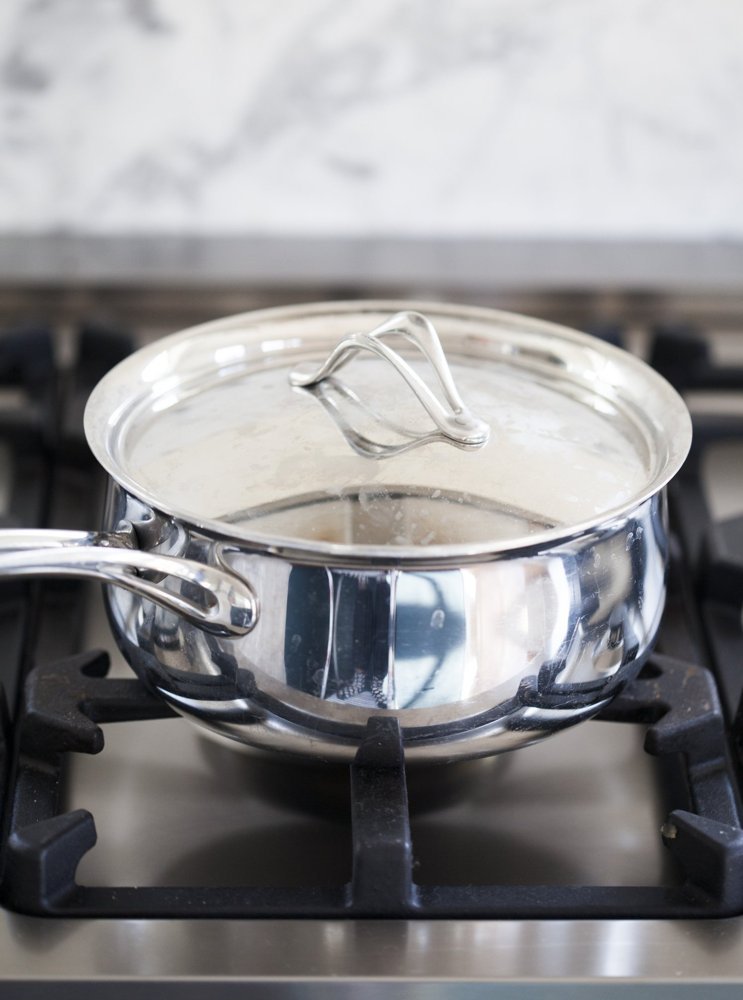 2 – قم بوضع الوعاء على الموقد على نار عالية واتركه على النار حتى يغلي الماء