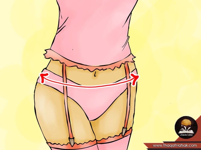 2. قياس محيط الخصر : و ذلك وضع شريط القياس حول الخصر لتحديد المقاسات و التأكد من أن الشريط فضفاض بعض الشئ .
