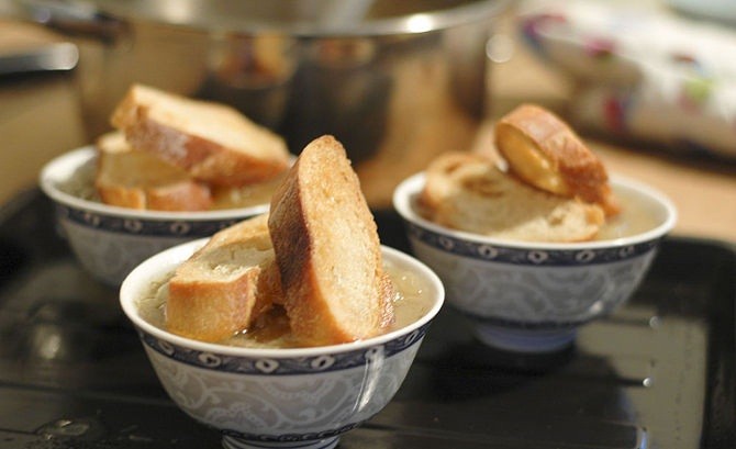 - بالصوري حضري شوربة البصل الفرنسية والتوست المحمص بالجبنة